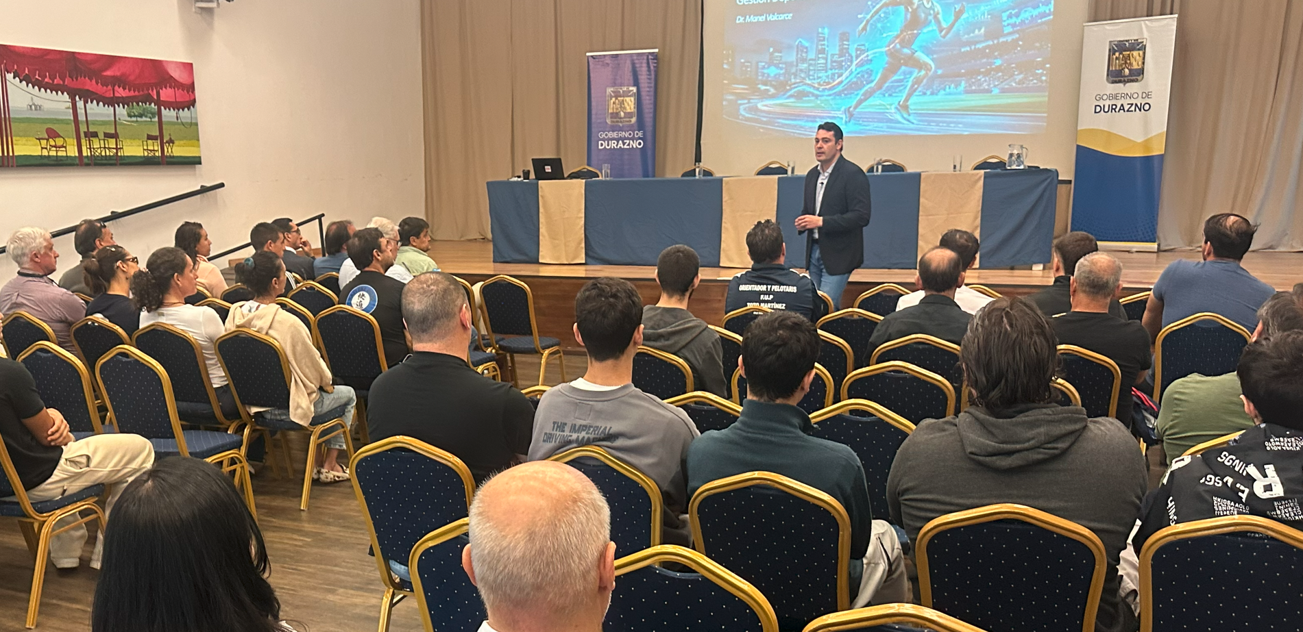 En la jornada del sábado 25 de abril, la Sala Lavalleja de la ciudad de Durazno fue escenario del taller "Retos, tendencias y oportunidades de la IA en la gestión pública deportiva", a cargo del especialista español Dr. Manel Valcarce, referente en deporte, ciencias empresariales y tecnología de la comunicación.