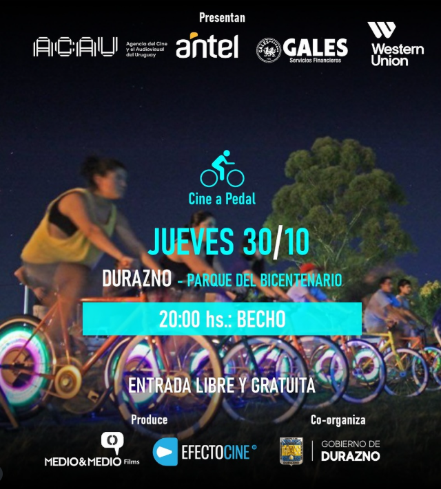 En el marco de la Gira Itinerante de Primavera “En 3 Actos”, la función de Durazno forma parte de la tercera etapa del recorrido nacional, que incluye presentaciones en Rivera y Tacuarembó. El sistema de exhibición se apoya en una pantalla inflable Airscreen de 7,5 x 6 metros, un proyector láser de alta definición y un sistema EFECTO PEDAL compuesto por 10 bicicletas generadoras y estaciones adicionales para que el público pueda sumar sus propias bicicletas a la experiencia.