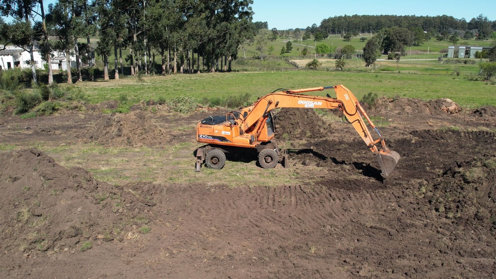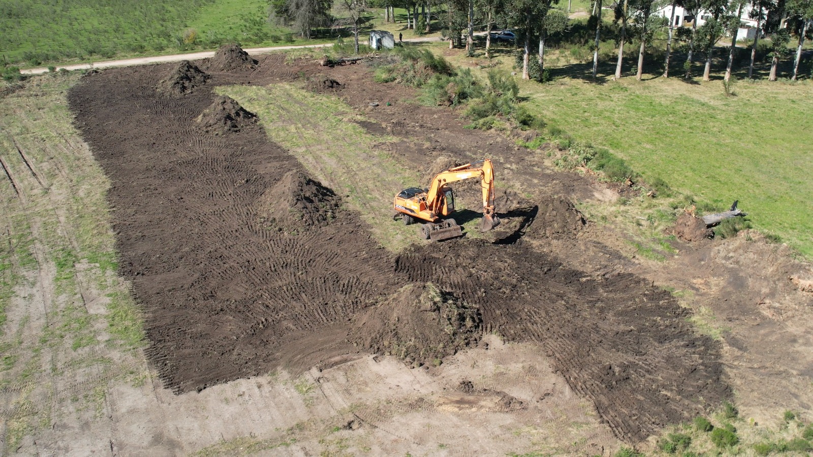 En el día de hoy comenzaron las obras de movimiento de suelo para la construcción de la nueva cancha de fútbol y rugby con césped sintético, que contará además con tribunas y vestuarios, en el terreno contiguo al Parque de la Hispanidad, donde anteriormente funcionara la ex planta de leche.