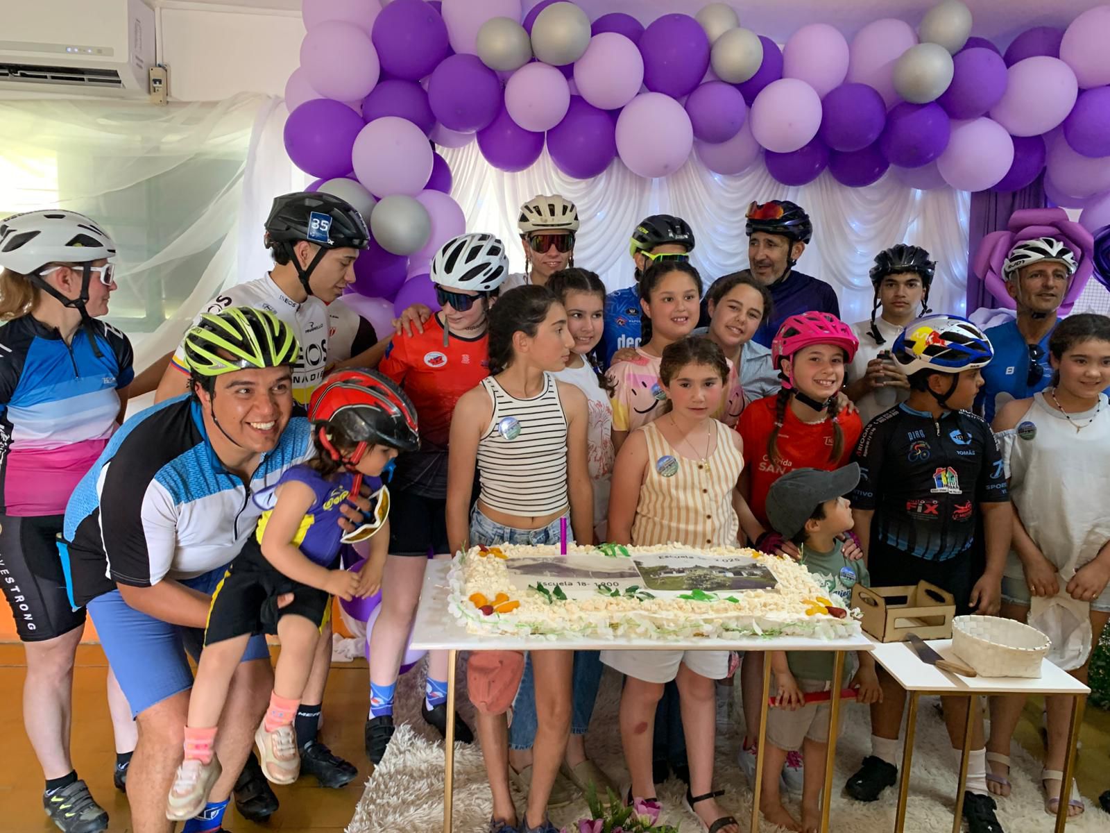 Ciclistas de todas las edades, desde infantiles a mayores, y padres de los pequeños, se adhirieron al cumpleaños escolar realizando un entrenamiento a tren controlado por ruta 14 hasta ruta 100 en Ombúes de Oribe, donde en la escuela compartieron con alumnos y maestros de un lindo momento de camaradería.
