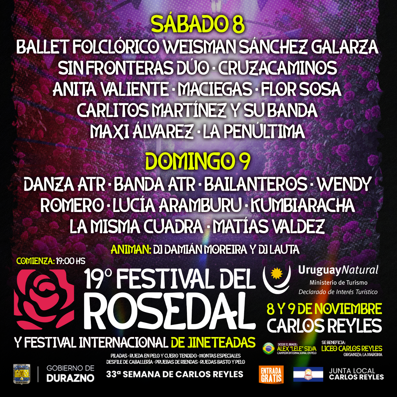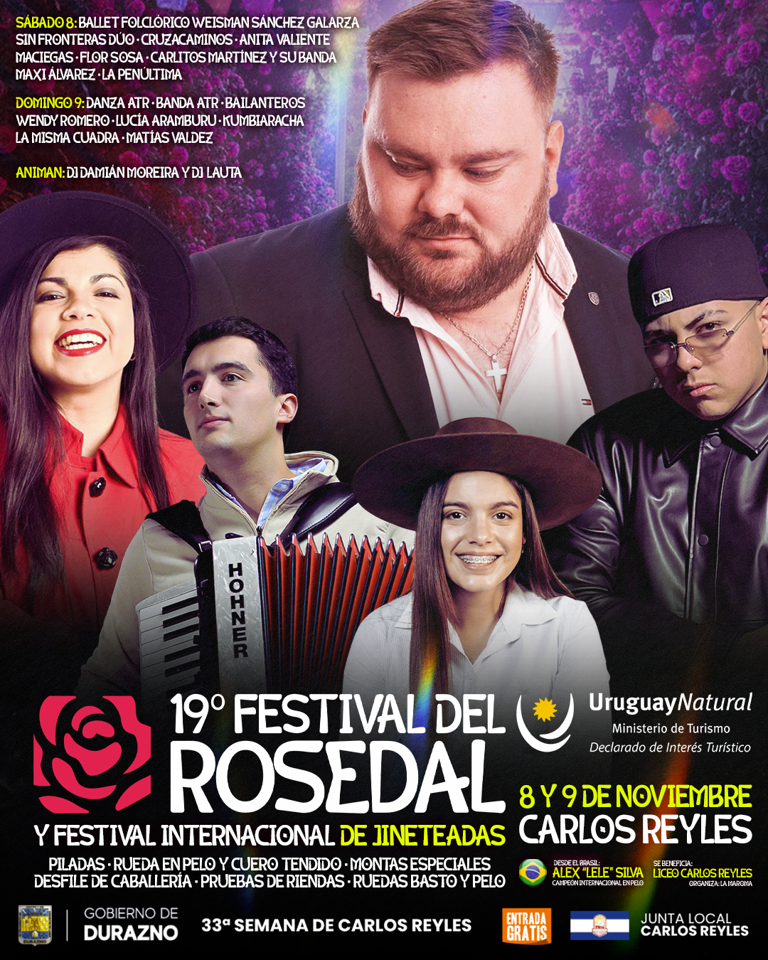 El Ministerio de Turismo de Uruguay, a través de su marca país Uruguay Natural, declaró de Interés Turístico Nacional al 19.º Festival del Rosedal de Carlos Reyles, destacando su aporte a la promoción cultural, turística y comunitaria del departamento de Durazno.