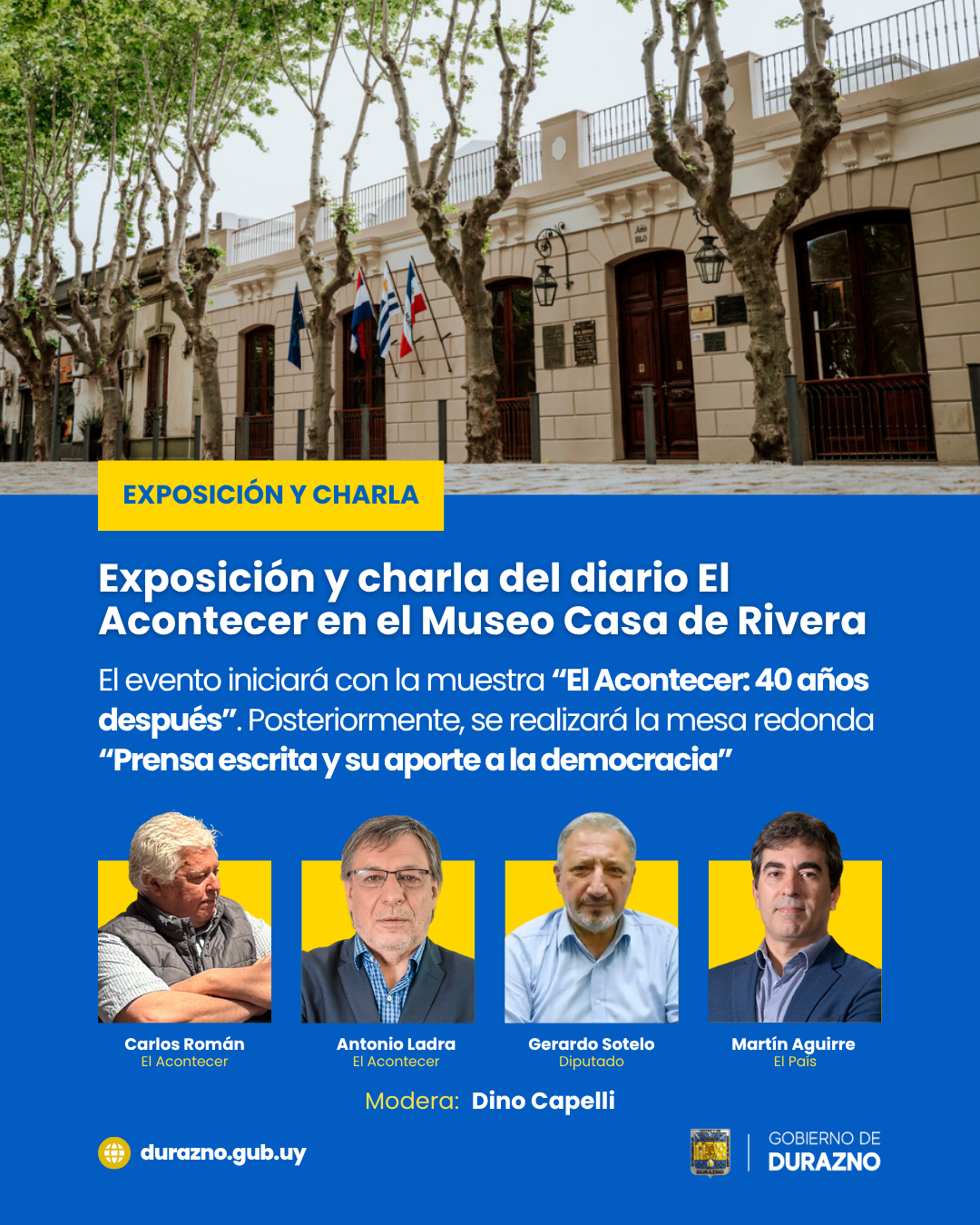 Este jueves a las 17:00 horas, en el Museo Casa de Rivera, se llevará a cabo una actividad especial en el marco de la 19ª Feria del Libro – Expo 2025: la Exposición y Charla del Diario El Acontecer.