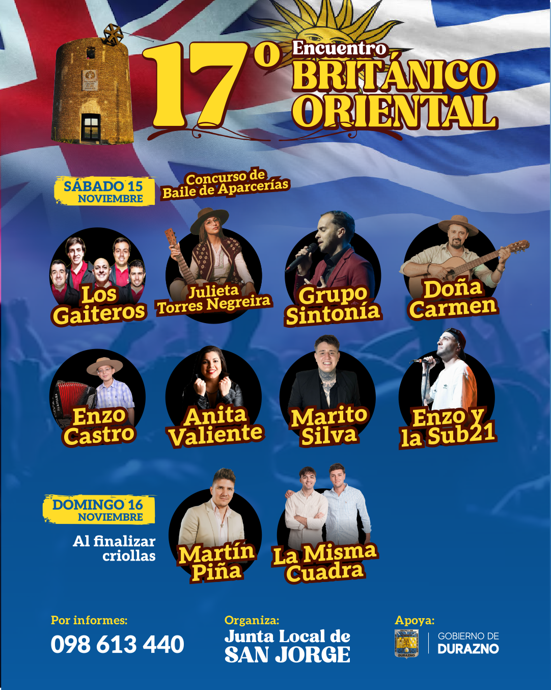 El histórico poblado de San Jorge volverá a festejar una nueva edición del Encuentro Británico Oriental, la ya clásica celebración que conjuga la tradición criolla con la herencia cultural que identifica a esta comunidad duraznense.